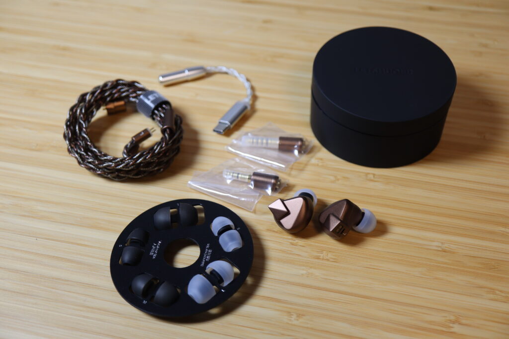 さらに、USB Type-Cに直接繋げられるDACアンプケーブル「DT01 Pro」まで同梱されているという大盤振る舞い。これだけで単品3,000円ほどするらしいです。今までで一番豪華かもしれないセット内容に感じますね。