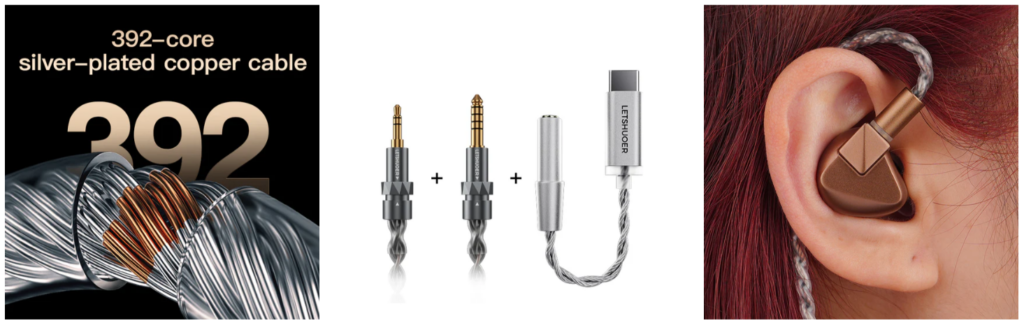 交換可能な3.5mm/4.4mmプラグ付きの高品質ケーブルや、USB-CのDACケーブルまで付属。コストパフォーマンスが異常に高いです。